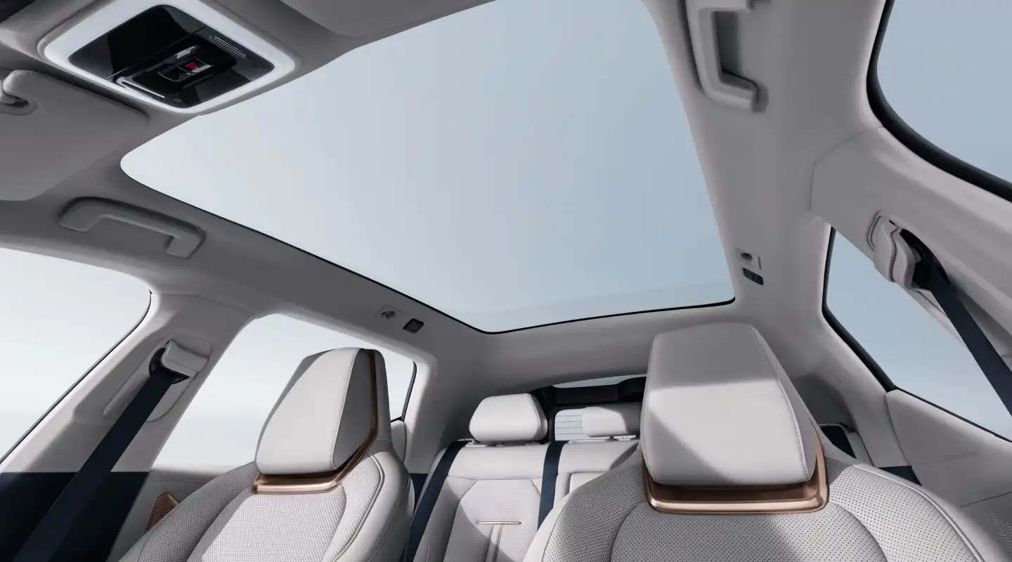 Zeekr X панорамалық шыны төбесі алғашқы сәттен-ақ керемет жылу оқшаулау, ультракүлгіннен қорғаныс және дыбыс оқшаулау талаптарын ескере отырып жобаланған. Бұл — кәдімгі шыны емес: алдыңғы қатарлы өңдеу технологияларының арқасында жылу өткізгіштік коэффициент ≤20% құрайды, инфрақызыл сәуленің 98%-дан астамы мен ультракүлгіннің 99%-дан астамы бөгеледі. Бұл тікелей күн сәулесінің әсерінен салонның қызып кетуін тиімді түрде болдырмайды, сондықтан қалалық маршруттарды еркін бағындырып, күн сәулесінен еркін ләззат алуыңызға мүмкіндік береді.