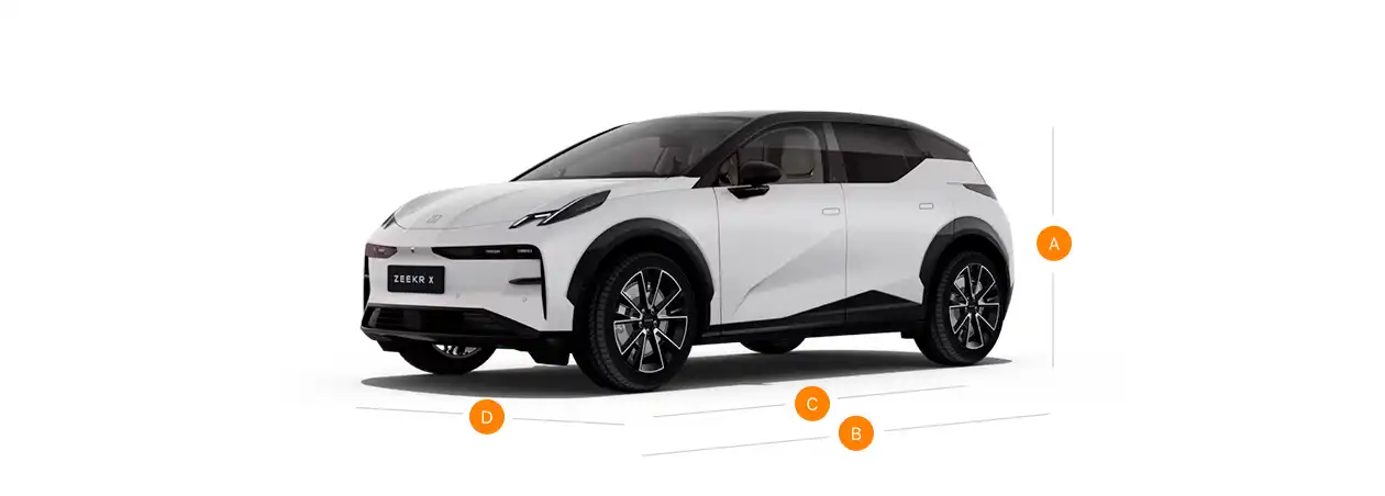 Имея длину 4432 мм, высоту 1566 мм и колесную базу 2750 мм, Zeekr X идеально подходит для городских улиц, а уникальный дизайн дневных ходовых огней обязательно привлечет внимание.